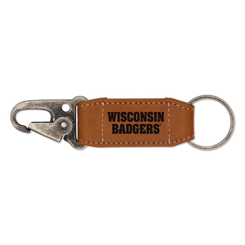 Wisconsin Badgers Laser Engraved Vegan Leather Carabiner Keychain - Brown